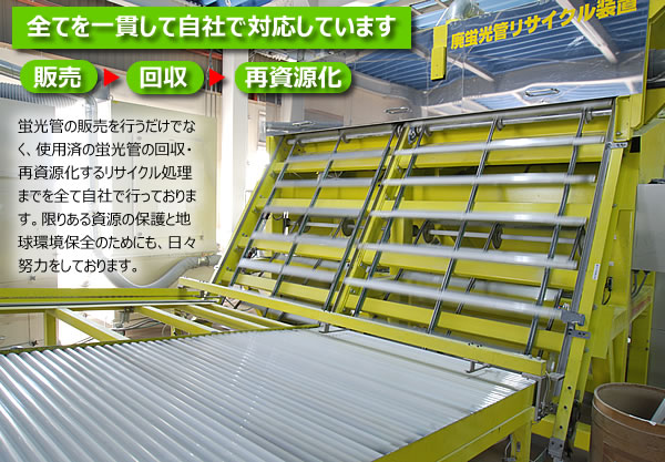 使用済み蛍光管のリサイクル処理には多大な設備と高度な技術が不可欠です。