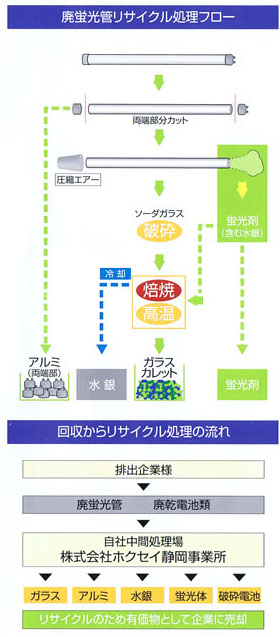 普通は産業廃棄物としてゴミとなってしまう蛍光管や乾電池を安心・安全・低コストでリサイクル処理します。